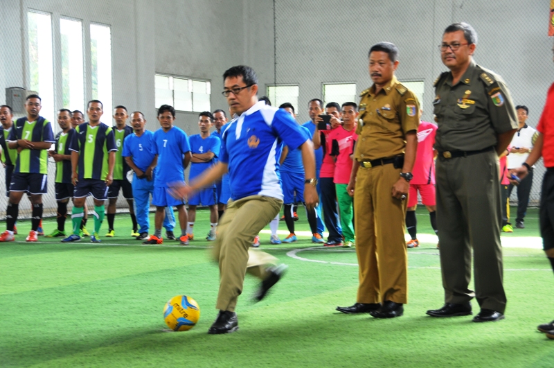 Sekretaris Dewan Korpri Tias Nuziar membuka Kejuaraan Futsal di Gedung Futsal Setda Provinsi Lampung, Senin 14 Maret 2016.