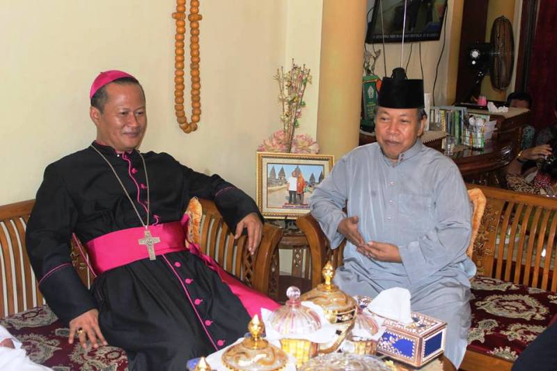 Uskup Keuskupan Tanjungkarang Mgr. Yohanes Harun Yuwono saat berkunjung ke kediaman salah satu tokoh NU Lampung Prof. Dr. KH. Bahrudin MA, Rabu 06 Juli 2016.
