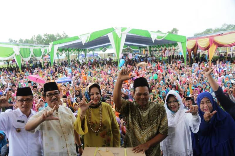 Acara yang disambut antusias oleh ribuan masyarakat Lampung Timur tersebut digelar juga sekaligus memperingati Isra Mi’raj dan Khitanan Masal di Lapangan Desa Tri Tunggal Rabu 26 April 2017.