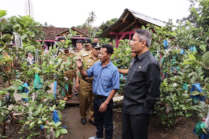Pjs. Gubernur Lampung Didik Suprayitno, didampingi Pj. Bupati Tanggamus Zainal Abidin meninjau budidaya jambu kristal, jambu bangkok, salak, dan pisang mas di Desa Sumberejo, Kecamatan Sumberejo, Tanggamus Selasa petang 13 Maret 2018.